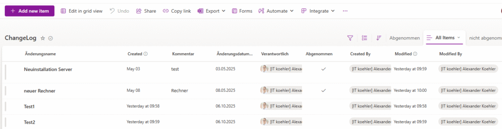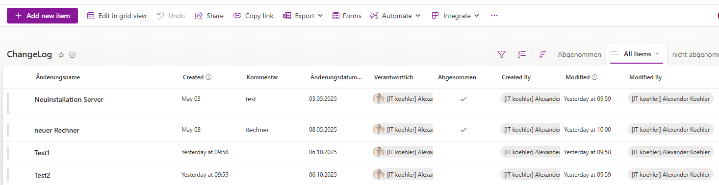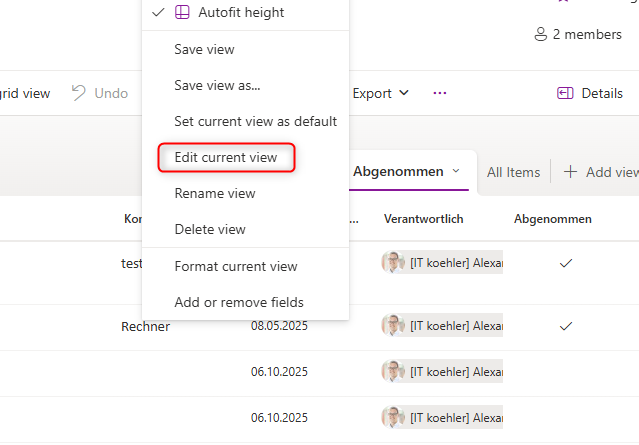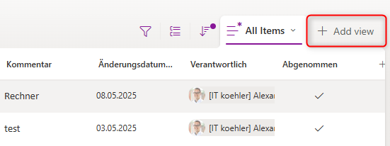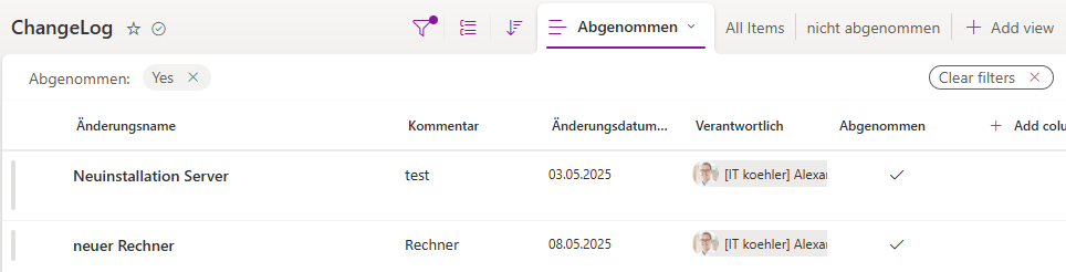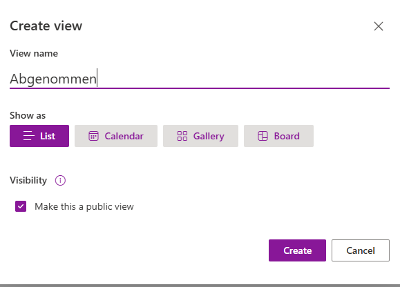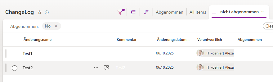 In meinem Fall möchte ich mit der Liste weiterarbeiten, sodass ich auch die Listenansicht weiterauswähle. Diese Ansicht soll nur „abgenomme“ Einträge anzeigen.