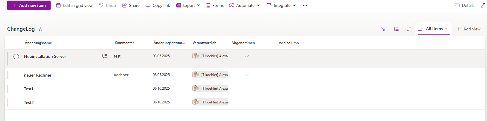 HINWEIS: sollte der Button ausgegraut sein, liegt dies an Berechtigungen auf die Lists!